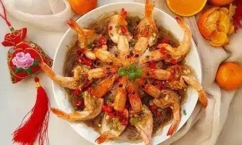 如图码好虾子,虾头竖着靠在中间那坨粉丝上。