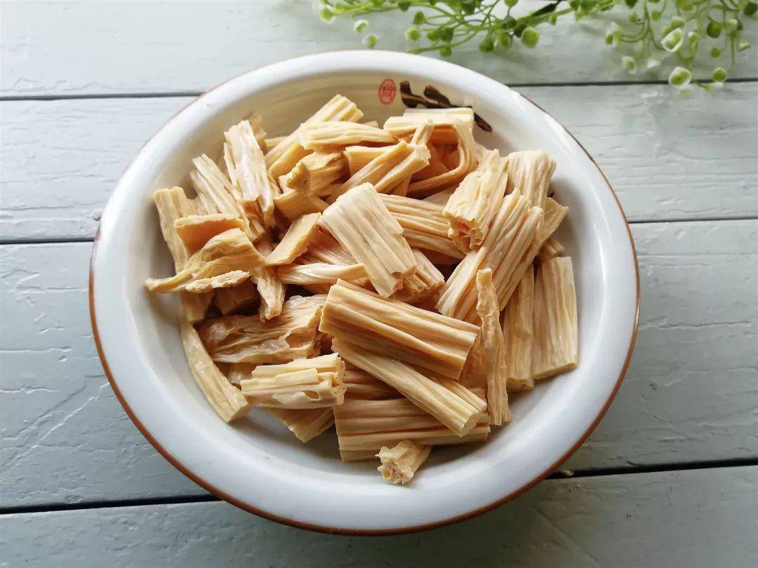 1.将腐竹放在冷水中浸泡3-4个小时,将腐竹泡发至无硬心,先洗一遍,切成段,捞出攥净水分。