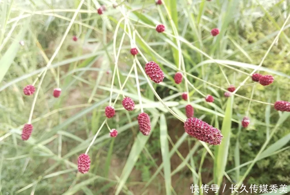 地榆是蔷薇科地榆属多年生草本植物,植株幼苗可能不太显眼,但一旦开花之后,十分具有辨识度。其花是穗状花序,通常呈圆柱形,长2、3厘米,颜色为红色或者紫红色,看起来犹如咱平常吃的烤肠一般(如图)。
