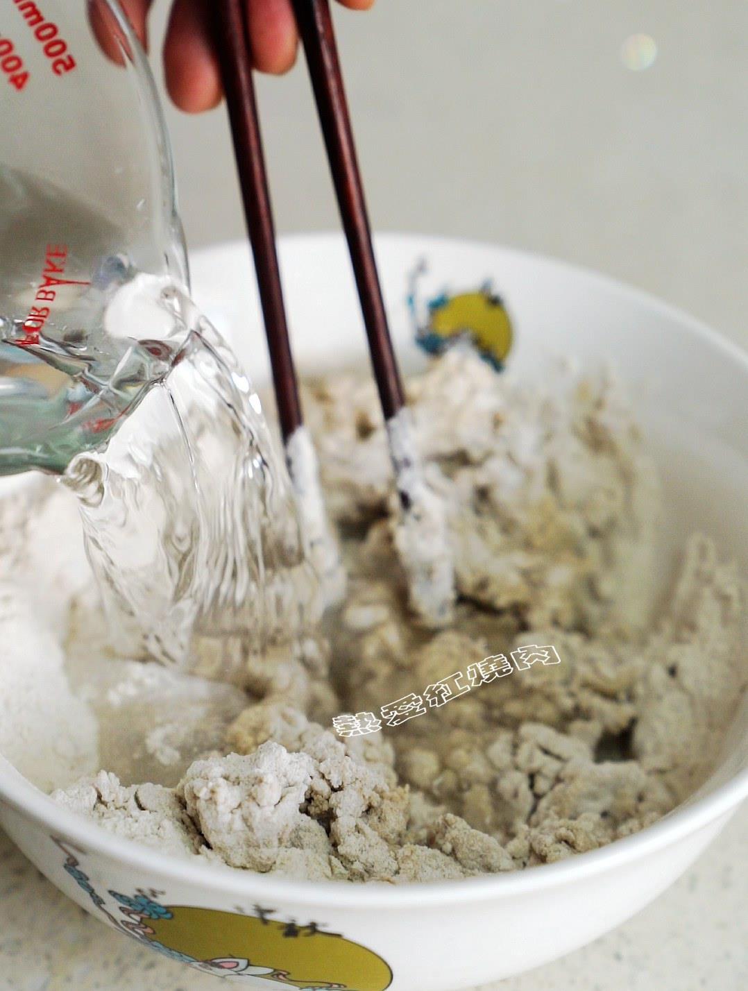 2在荞麦粉里加入4克盐,一个是为了增加底味一个是为了增强一下面筋。