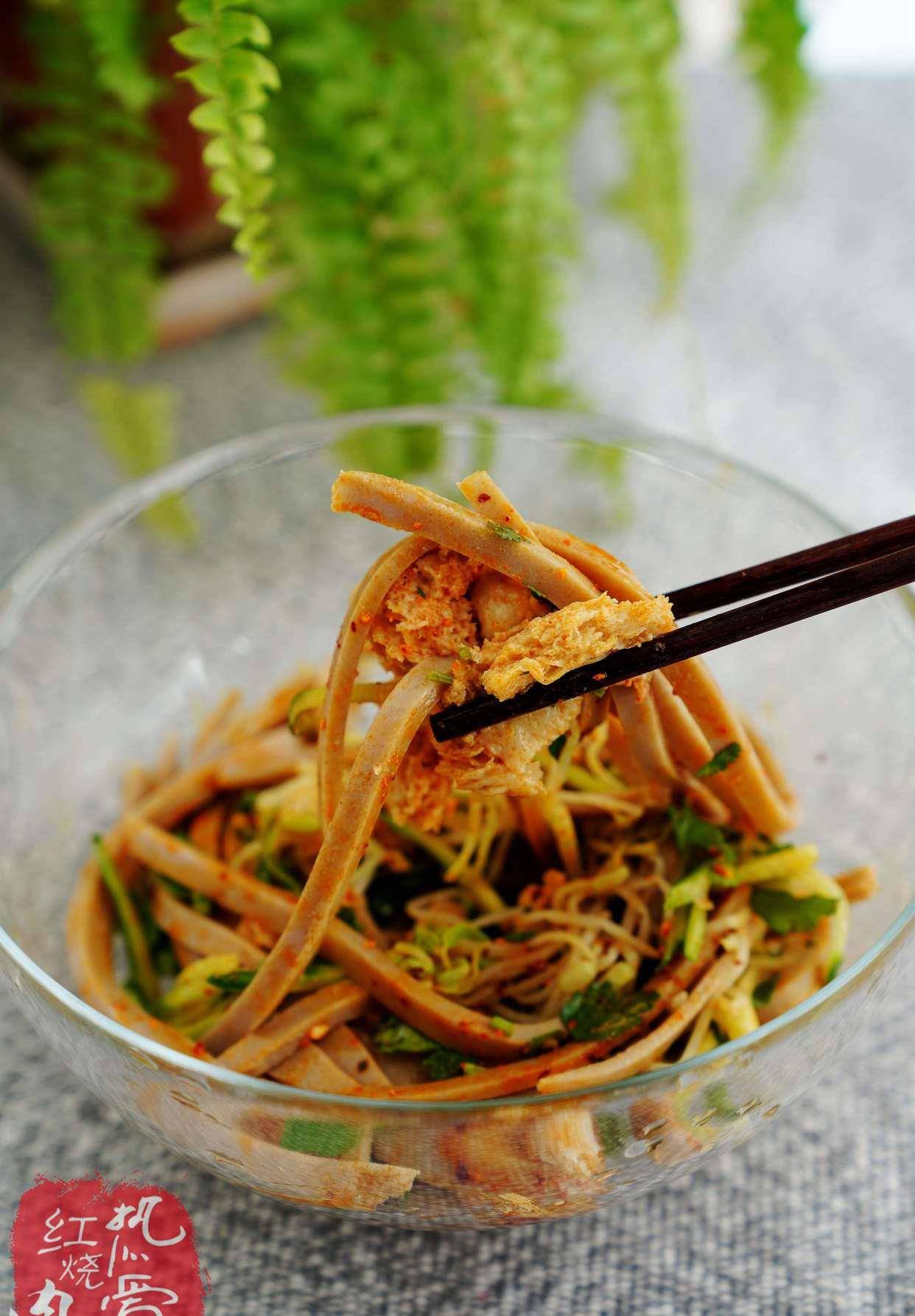 所以随自己的喜好来做吧!勤快点或是时间比较充裕就洗面做,着急吃就用直接发来做,只要料汁调的好,咋做都好吃,我今天就是按照凉拌凉皮的做法拌着吃的,还放了我自己蒸的面筋,最后淋上油泼辣子那是相当的好吃呀!