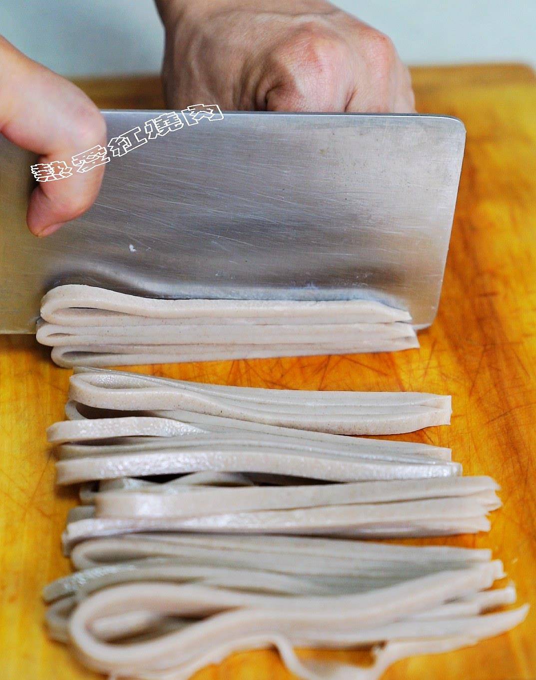 前不久分享了一个用洗面的方法做的荞麦碗托,很多人留言说为啥不直接和面糊就蒸呢?我答应大家再用直接和面糊的方法做一次再来汇报,一直拖到了今天才完成作业,我亲自试了,直接用荞麦面粉加水调成面糊蒸好的面皮,比先和一块面团再用清水把面团洗成面糊沉淀的方法蒸好的口感上区别不是太大,不过洗面方法做的最后对折切好以后没那么容易断,而直接和面糊蒸好的面皮对折切完了我一拿起来,它就从对折点那里断开了,所以洗面方法做的面皮要稍微有韧一些,不过吃着真的差不多,所以用两种办法都可以。
