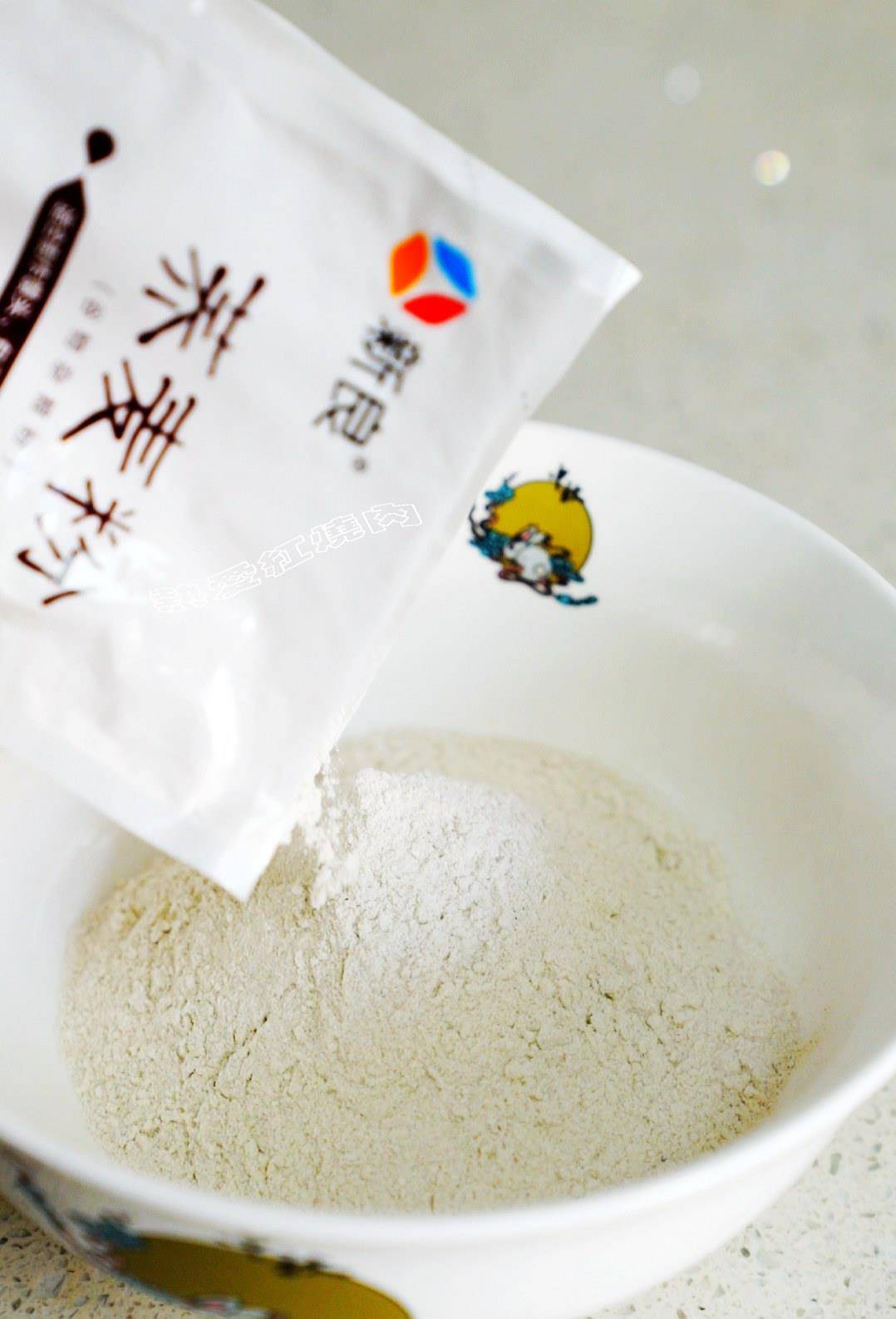 1先取一个大碗称250克荞麦粉放进去,我这是纯荞麦粉没掺白面粉,很多人会掺点白面进去,我想吃纯的所以没掺。