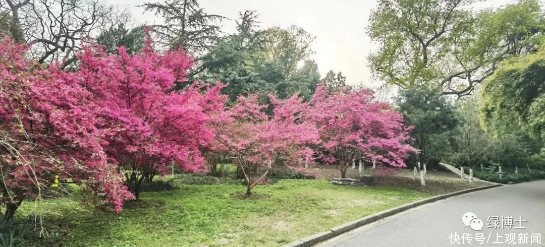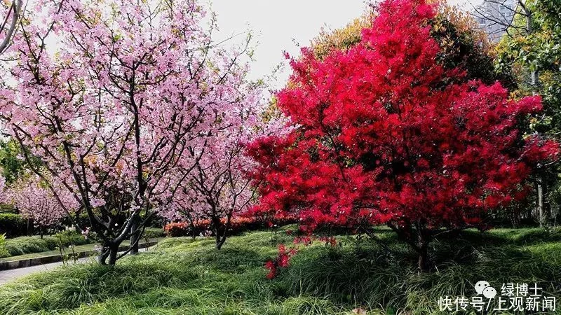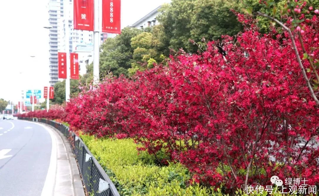 除了红花檵木,近期申城街头还有海棠、紫荆也竞相绽放。