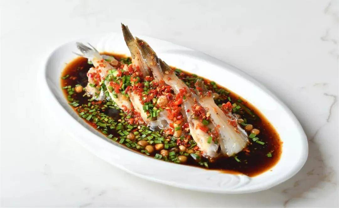 3.取一碗,加入小米椒碎、一品鲜酱油、辣鲜露、蒜泥、醋、白糖、姜米、香油、鸡粉搅拌均匀,淋在耗儿鱼上,再撒上酥豌豆和韭菜末即可。