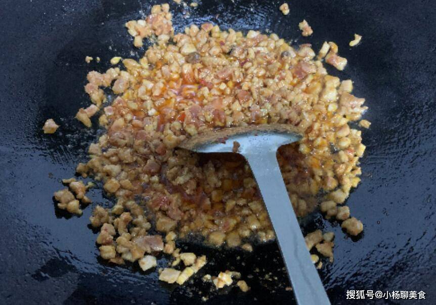 然后把锅烧热,加入适量的油,油热后倒入腌制好的瘦肉丁,炒至变色后从锅里捞出来,这样瘦肉就不会被炒老了。
