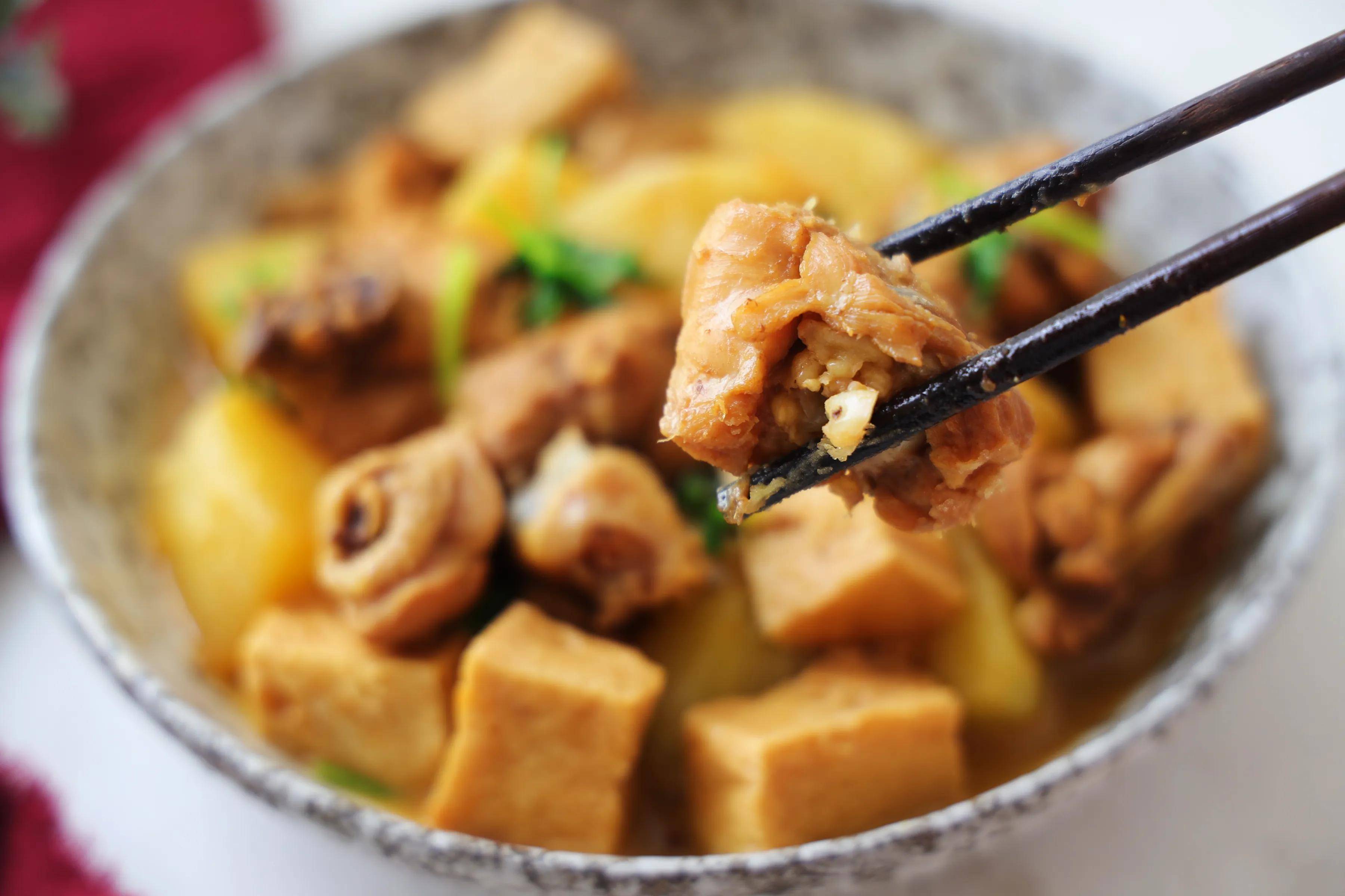 说到土豆鸡块,这可能是很多人特别爱吃的一款美食哦。毕竟土豆的嫩滑加上鸡块的鲜美,不但解馋,而且还非常下饭呢!今天我们就用鸡腿来做一款土豆豆腐炖鸡腿,这里的豆腐最好选用冻豆腐,这样会更加有嚼劲,而且颜值也更高一点。