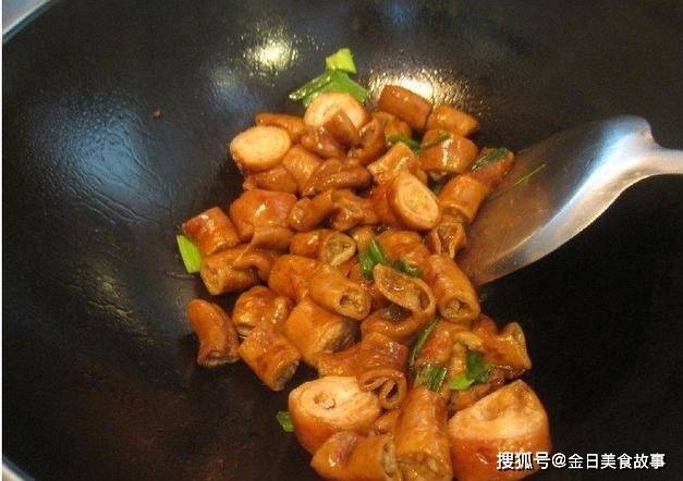 5.饥饿的猪的肠道没有水分,加入酱油,用猪的大肠炒酱,油炸水,加水,加入冰糖增加味道;