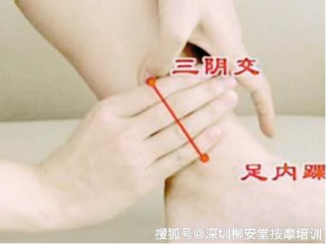 穴位位置:在小腿内侧,脚踝骨的最高点往上三寸。按压有一骨头为胫骨,此穴位于胫骨后缘靠近骨边凹陷处。