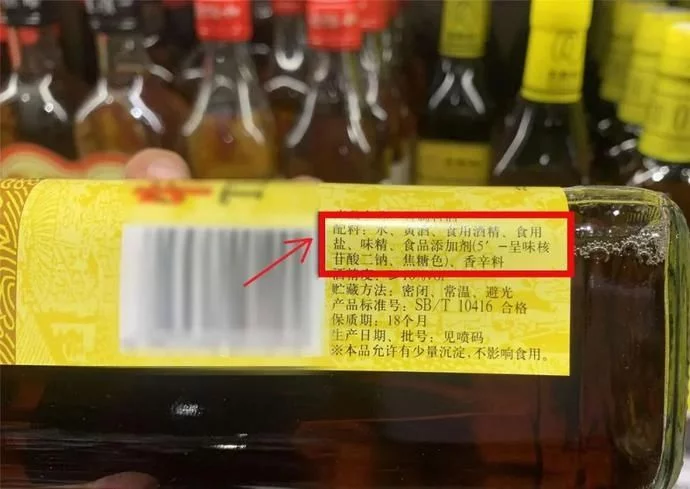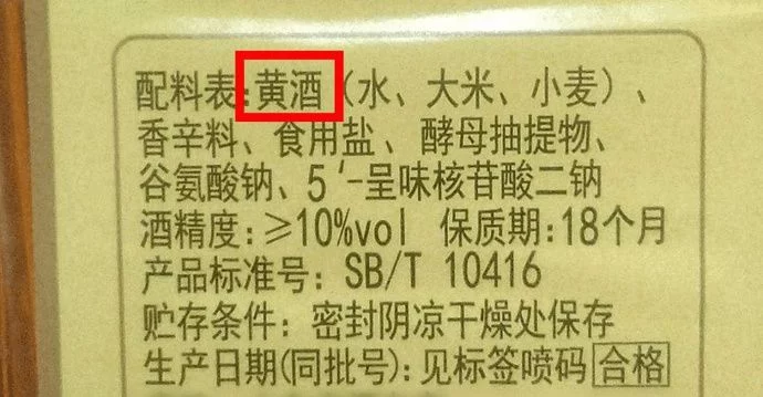 所以,无论我们买什么调料,都先看其配料表。质量好的料酒主要成分应该是黄酒,所以配料表中排在第一位的是黄酒。