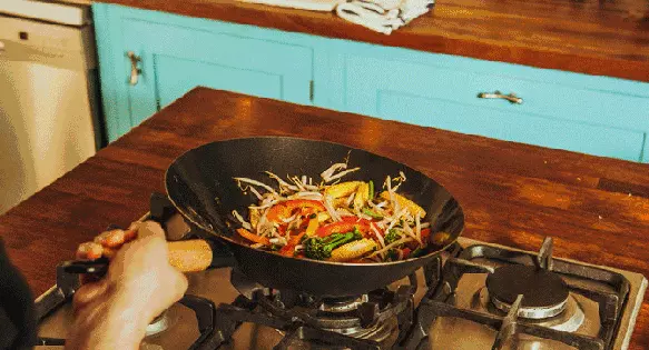 倒料酒的正确姿势:当炒菜炒到温度最高的时候,料酒沿着锅边淋进去,经过高温后,料酒会快速挥发,带走腥味,不会有料酒味残留,从而食物变得更香。