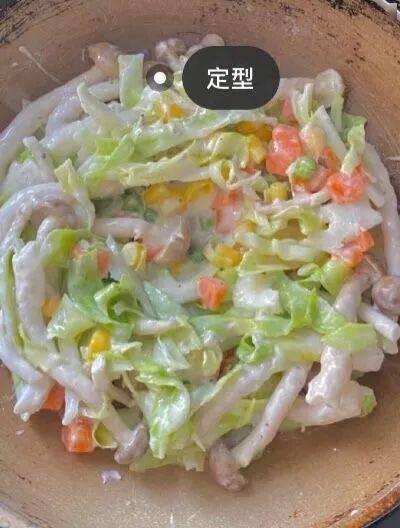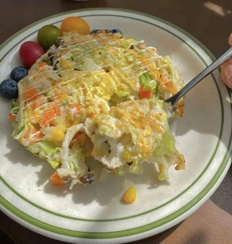 卷心菜、三色蔬丁、菌菇、鹌鹑蛋(或鸡蛋)、中筋面粉、黑胡椒、五香粉、香油、食盐、沙拉酱、番茄酱