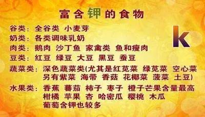 谷类是钾来源的主要食物。大米里有钾元素,比大米含量更多的是一些粗杂粮,比如小米、荞麦含钾量都很高。运动后,可以喝一碗米汤,补钾效果超好。缺少这一克的钾就有可能导致我们失去宝贵的生命。