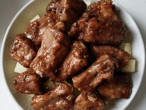 9.成色如图。炸的过程中,排骨已经全熟,后面蒸是为了让排骨酥烂,而且蒸汽作用下,能沥出排骨中的油脂。
