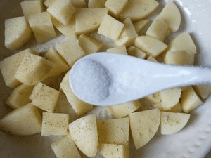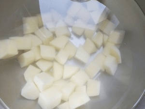 7.土豆切拇指大的小块。