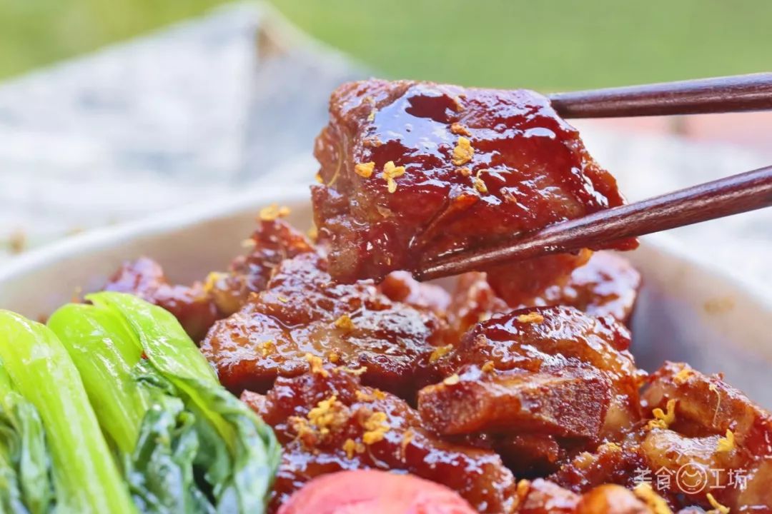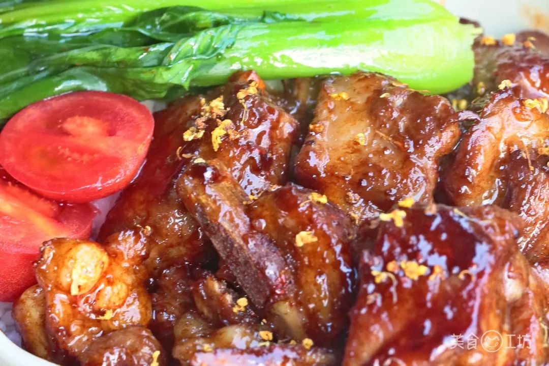 排骨吸收了满满的桂花酱汁,变得软嫩,每一块都裹着淡淡的花香,撒上干桂花,好看又好吃。