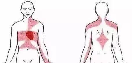 这里要强调一下,放射痛的范围很广,包括胃、下巴、肩膀、颈部、后背、左臂、左腿、牙、舌头等等部位的。