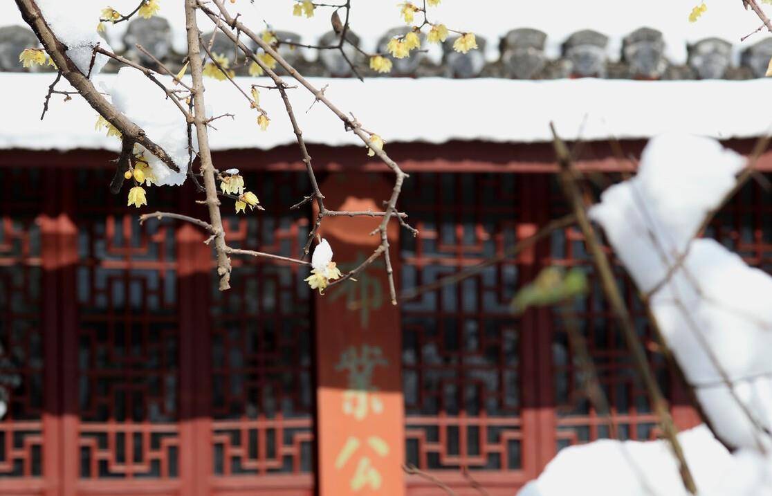 远远看上去,盛开的梅花似乎是一团团白雪,如何得知是梅花而非白雪呢?走到近处就可以闻到梅花的阵阵香气了。