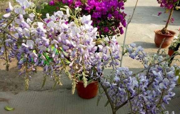 花色非常漂亮,其实紫藤不仅可以养在院子里,养一棵在围墙边,开花的时候,就像浪漫的紫色花海一样,非常养眼迷人,就像紫色的瀑布一样,太美了。而且也可以种在略大一点的花盆里面,给它修剪出不同的造型来,打造出来一盆比较袖珍的盆栽紫藤花,开花的时候也很美呢,而且它的香味也是挺好闻的。紫藤也是特别容易扦插繁殖的一种花儿,很多花友都扦插成功了。