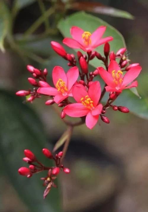 琴叶珊瑚在花朵的顶端能开出一朵朵精致的小花,花朵的形态一般是五角星一般的,花朵的颜色通常都是红色的。也有少部分的琴叶珊瑚品种能开出粉色的花朵。