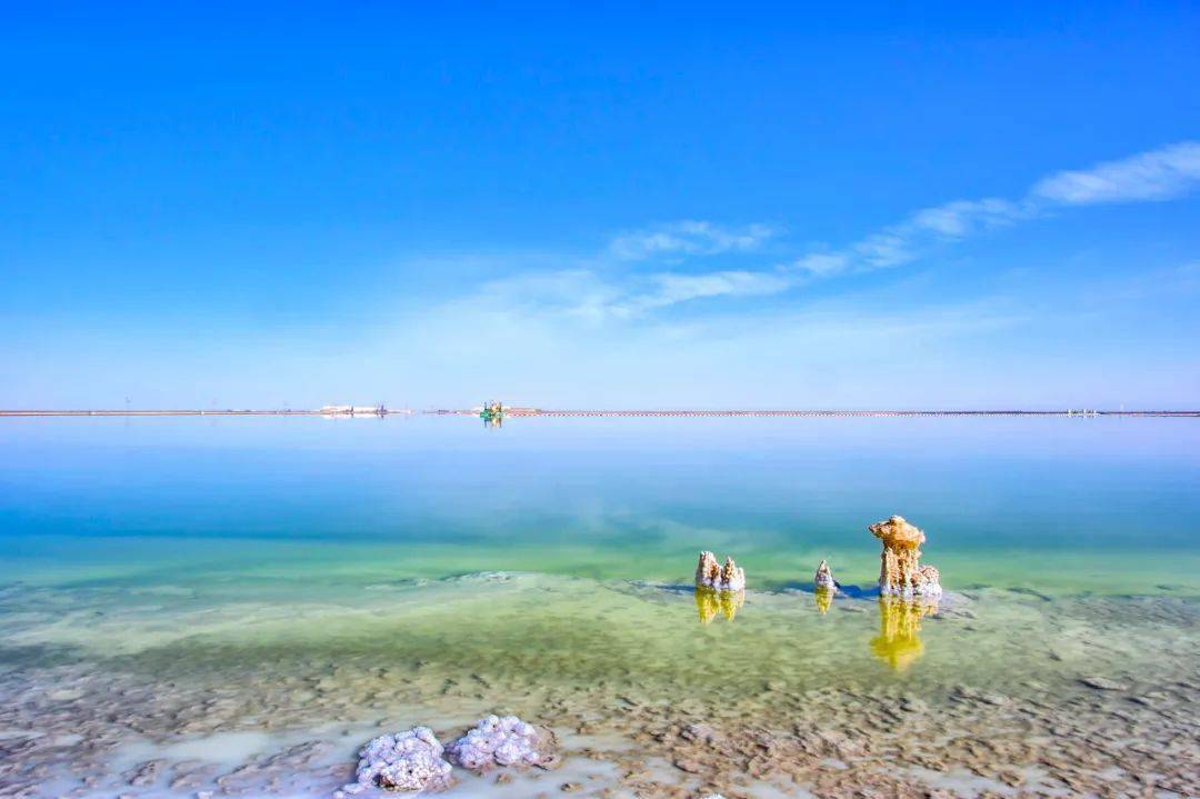这里有纯净清澈、泛着浅黄绿的察尔汗盐湖