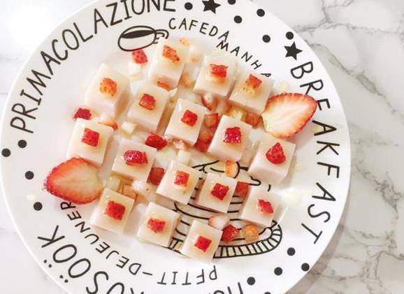 草莓小方这种甜点,里面含有美味的草莓和牛奶,是把营养和美味结合得很好的一种美食,对大家是非常有好处的。而且这种甜点的做法也比较简单,造型也比较好看,可以说是相当完美了。这样一道美食,用到的材料是比较简单的,就是草莓、牛奶、玉米淀粉和白糖。这些简单的材料搭配在一起,就能够做出香甜滑嫩的草莓小方了。
