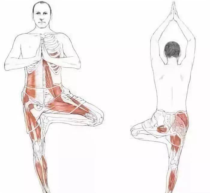而升级版的“树式”,它的要领更复杂一些,因为它所调动的是整个下焦腰腹及腿的平衡,直接把气血引到肚脐以下的下焦。