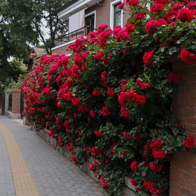 它的花瓣很厚实,层叠在一起,所以颜色很深,就像是纯红色。把它放在篱笆小院蛮不错的,它可以依附在栅栏上,然后一圈圈的盘绕,这样我们都没必要用什么装饰品,它就能够带来不错的效果,不经过人工处理也能够拥有属于自己的风采。