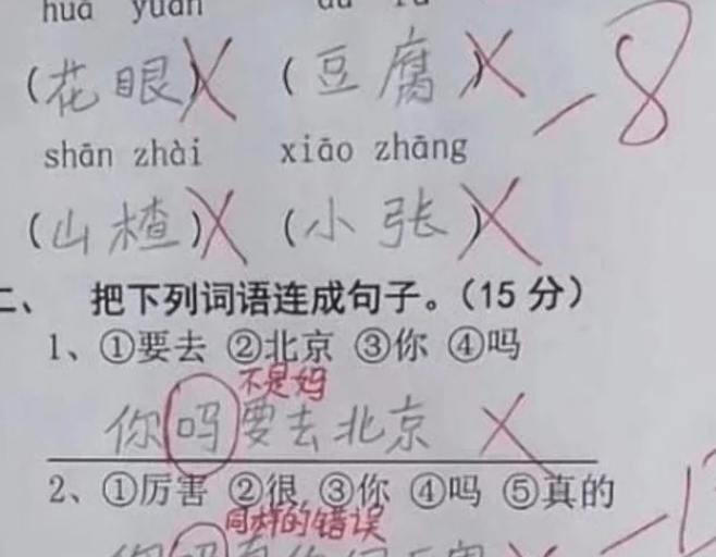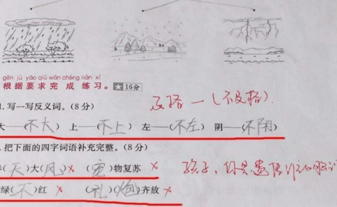 而对于小学生来说,可能理解起来就没有那么容易了的,但是他们有一个办法,那就是在词语的前面加一个“不”字,就能得到想要的反义词,不过老师可不傻,自然是毫不留情。