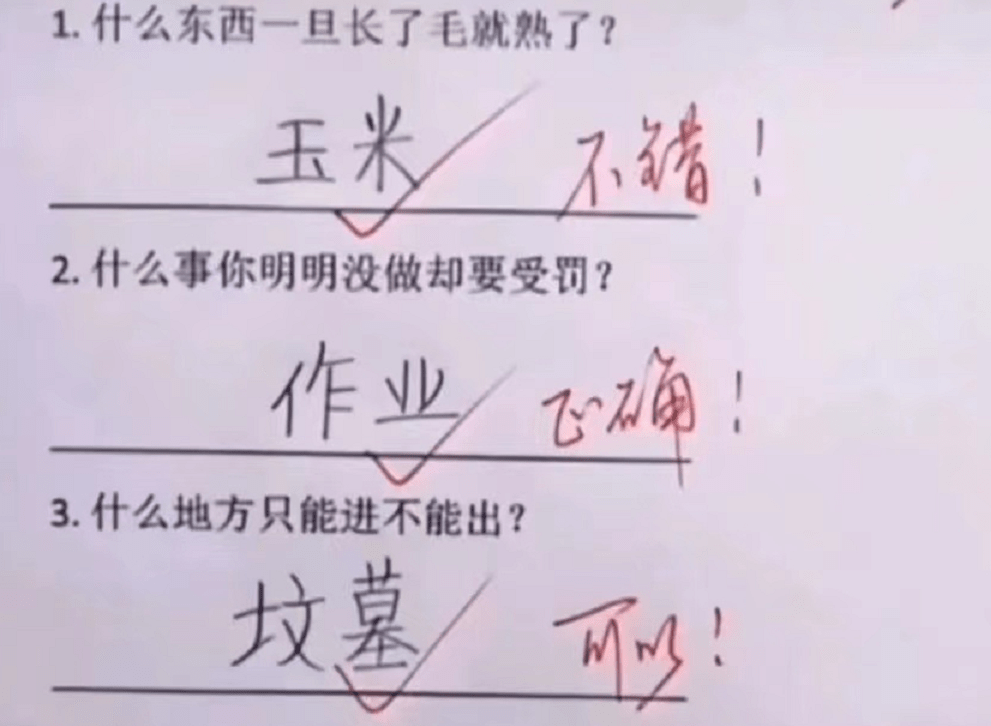 就像是这道题,“什么地方只能进不能出?”这道脑筋急转弯类型的题目,小学生给出的答案是2个字“坟墓”,仔细想想却是也是正确的,老师也给了满分。