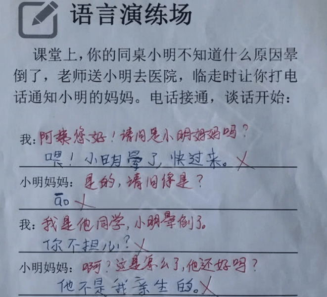现在小学生的试卷也是比较奇葩的,不过这似乎并不会难倒同学们,他们会根据自己平时的积累,以及对问题的理解去写出自己觉得正确的答案。