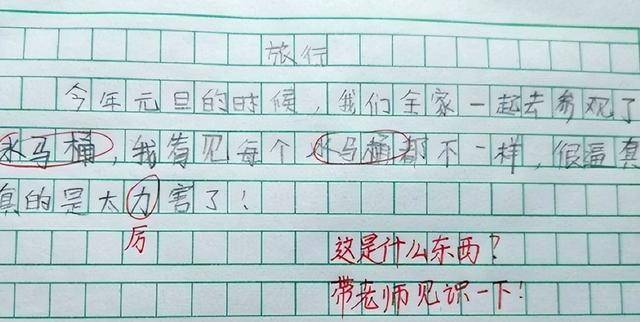 这位小学生应该是去看了兵马俑,所以回来写了一篇日记纪念下,可“水马桶”是什么鬼,小编不得不感慨这两个东西可是天壤之别啊,不仅老师没见识过,小编长这么大也还不清楚呢。