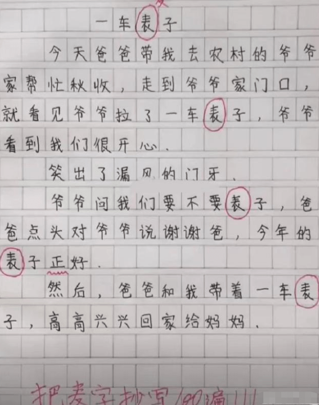 可是因为学生过于马虎直接把麦子写成“表子”,因为写错一个字,直接把爷爷一辈子的名声给毁了。