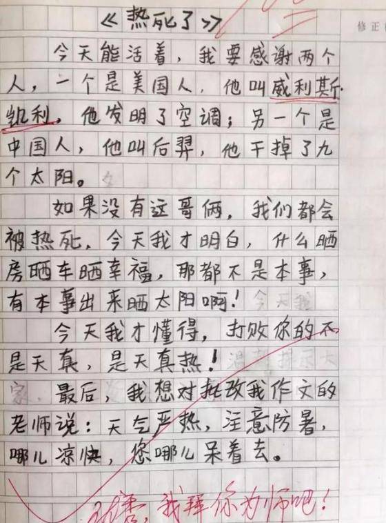 不过最后却给老师一句忠告“哪里凉快哪呆着去”,这句话却让人听起来怪怪的,不过看到这篇文章后,让老师都膜拜小学生。