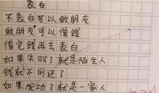 这是一篇关于“表白”的作文,当老师看到这篇作文后,都不禁感叹到:现在的小学生和“人精”一样。