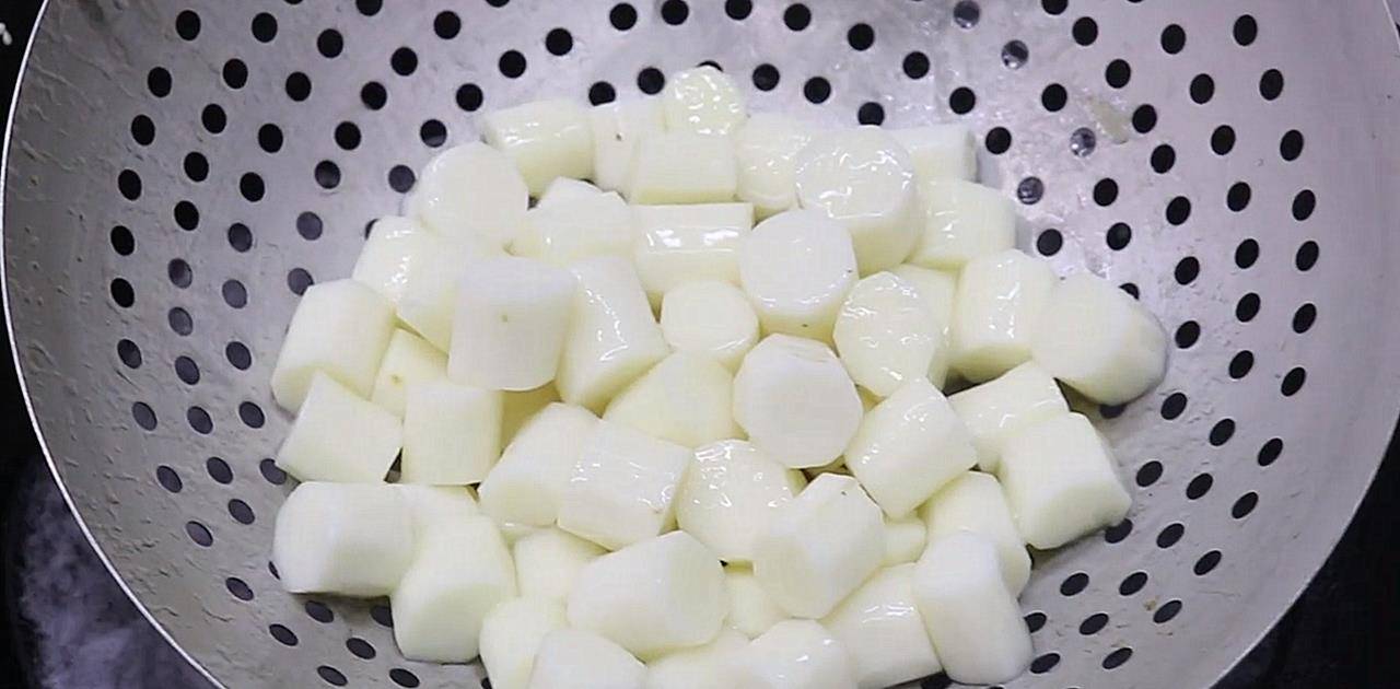 3.起锅烧水,冷水下入山药,把水烧开,再煮2分钟左右,去掉山药表面的粘液。最后捞出来沥干水分。