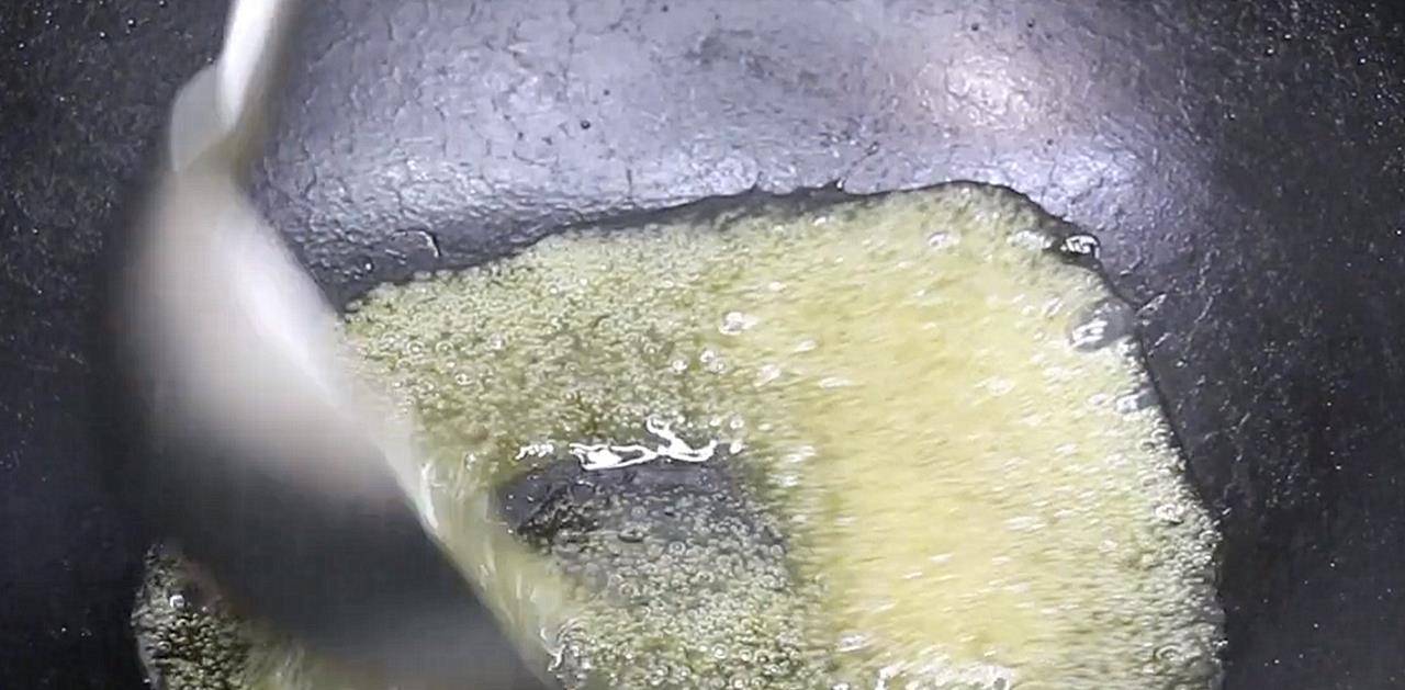 7.起锅倒入100毫升清水,再加入半碗的白糖。开小火熬制糖浆,一直熬到白糖出现香油色,关掉火。
