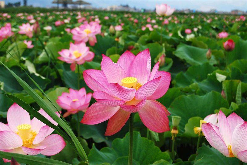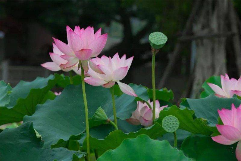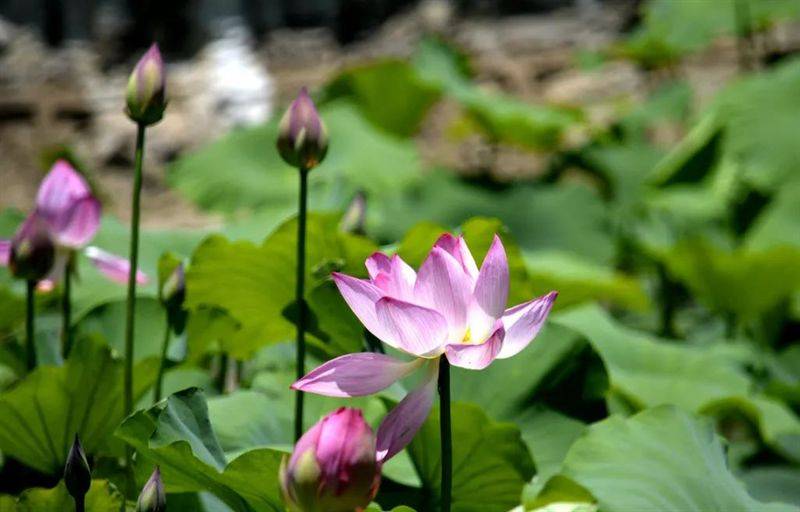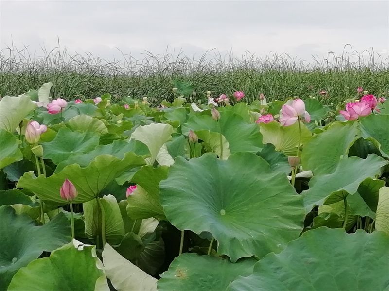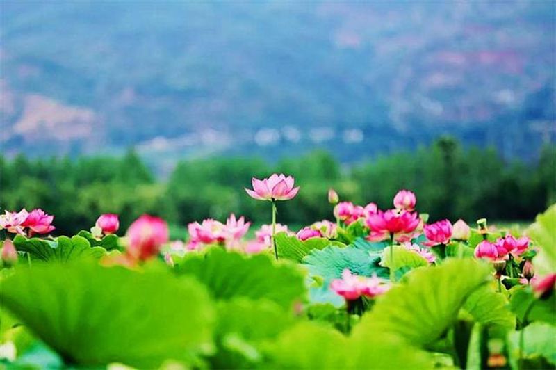 这里的荷花在几场夏雨之后竞相绽放。望无边的粉红碧莲扑入眼帘,满池荷花玉蕾吐艳,嫩绿的荷叶间点缀着浅色的花苞,有的盛开,有的含苞待放,翠绿的荷叶层层叠叠,错落有致,交织在一起,构成了一幅天然的秀美画卷。一缕微风吹过,阵阵荷花的清香随风而来,让人心旷神怡。