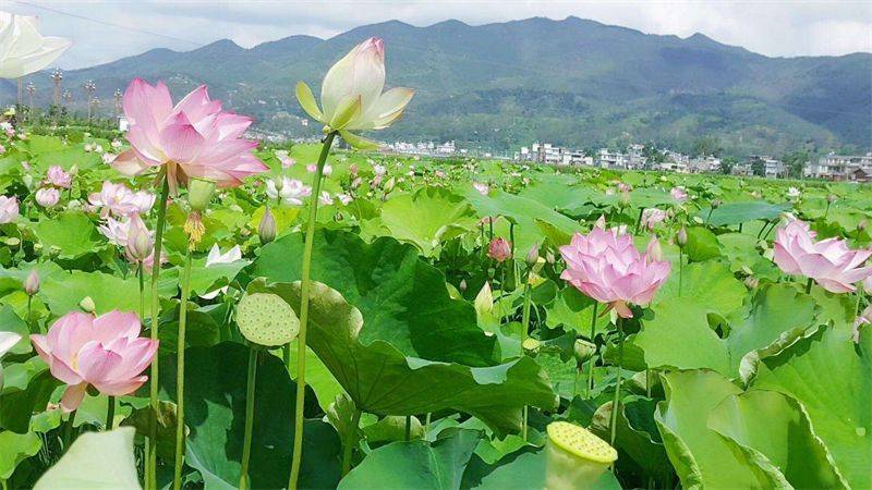 抚仙湖北岸澄江县城南郊的数千亩荷花是夏天抚仙湖最美的风景之一,荷塘主要集中在右所镇片区的吉花荷藕庄园、左所片区和小窑片区等地。