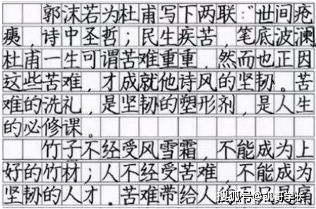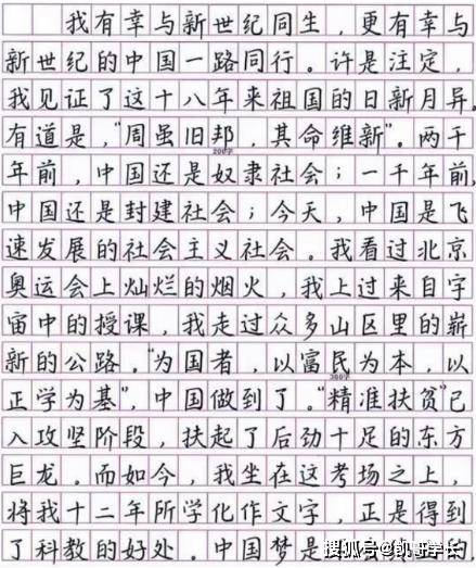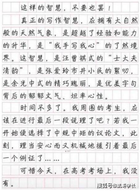 这样的作文如果不得高分就说不过去了,毕竟在争分夺秒的高考考场上,字迹写得如此工整,内容写得如此深刻,有着一定难度。