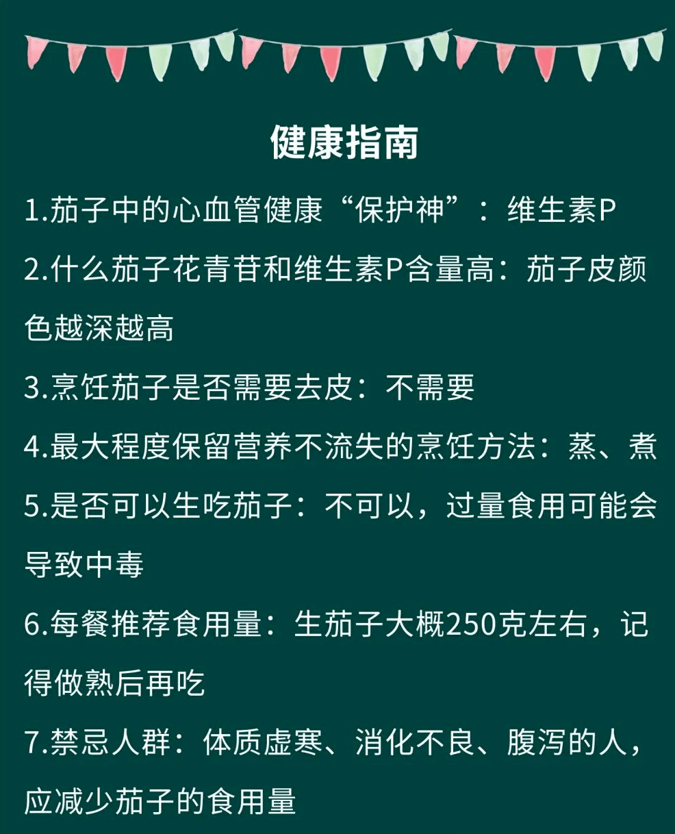 1.每餐推荐食用量:生茄子250克左右,记得做熟后再吃。