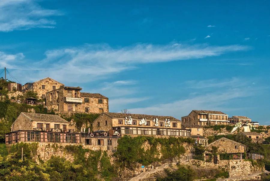 在石塘金沙滩南侧的澜山山头上,三栋石屋依山傍海而生,这就是栖衡石舍。它独占了海湾风景超美的一隅,绿植在墙上爬满斑驳的痕迹,写满每一个旅途的故事。