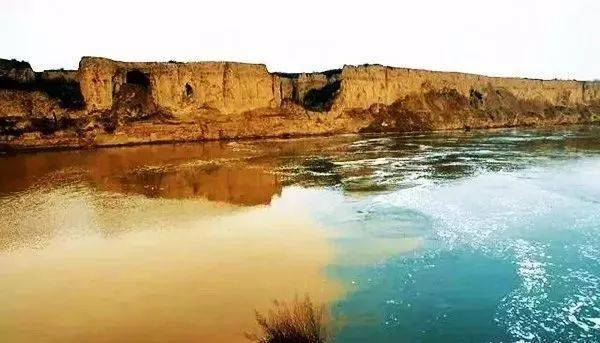 这是我国的泾河和渭河。两河交汇处,两种颜色,完全不会互相渗透,各自流淌。