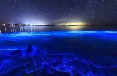 看着这张图,晚上的海水竟然发出耀眼的蓝色,闪闪发光,令人眩目。