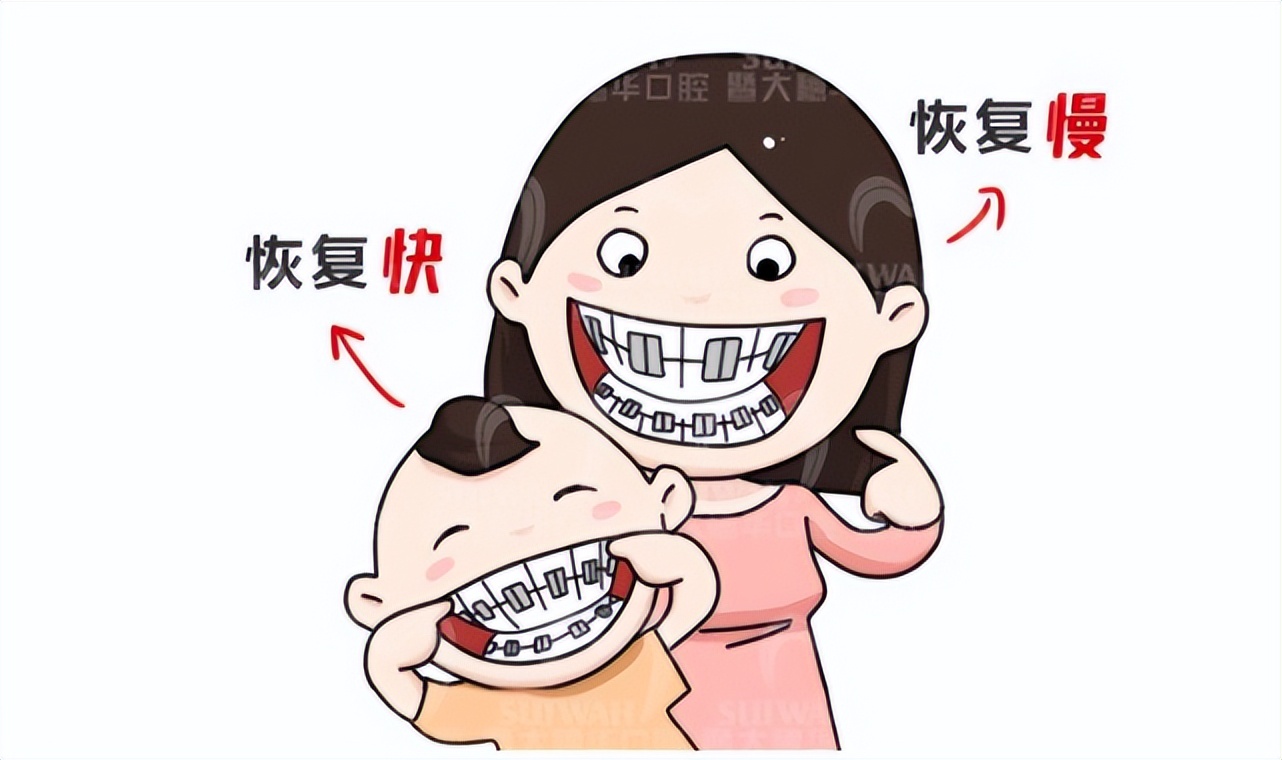 牙齿矫正时的移动速度主要取决于牙槽骨改建速度。年轻时新陈代谢旺盛,牙槽骨没有定型,移动速度快,所以矫正速度快,同时还可以利用正畸改建颌骨形态。