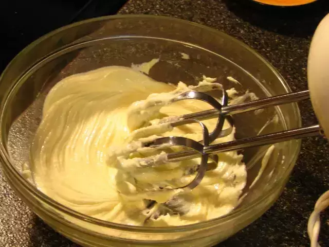 搅拌好的黄油呈光滑的乳膏状。如果操作不当,造成油水分离,使得充满在黄油中的空气消失。