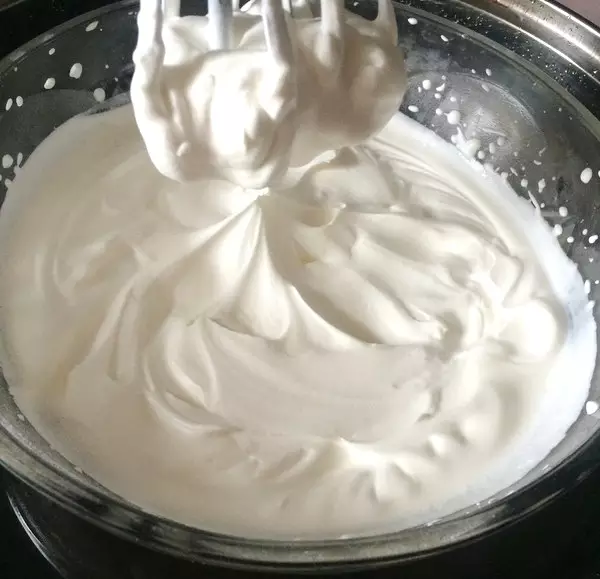 打发后的鲜奶油,内部充满空气,体积膨胀,由液态变为固态。这时就可以做成各种馅料。挤出各种花纹。