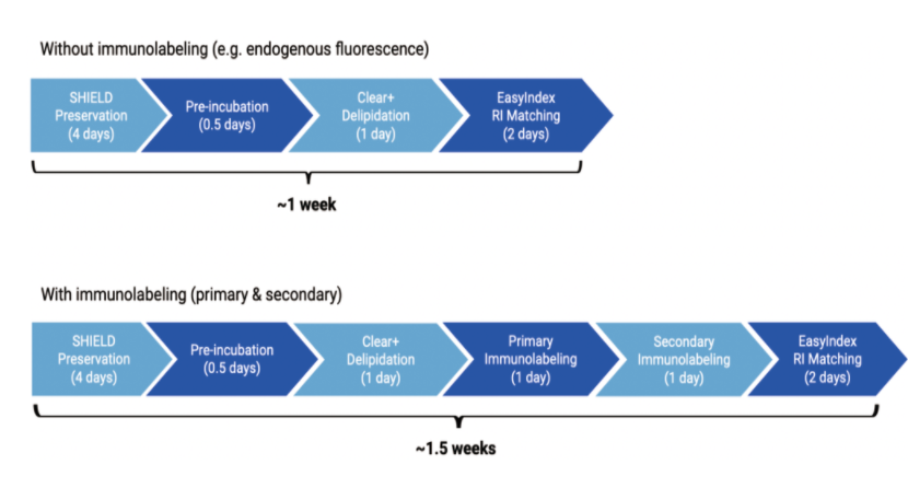 天即可实现主动式脱脂。 作为CLARITY方法改良版本,新一代SHIELD(Nat