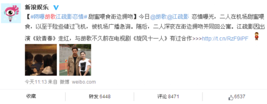 起底| 剧情大逆转!胡歌江疏影公开恋情