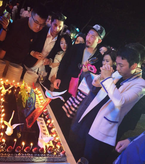 王思聪本人也没闲着,自己在微博晒出了来参加他生日宴会的表演嘉宾韩国女子组合T-ara的照片,并写道“有钱,任性。嘻嘻~”。而整场宴会的高潮许愿环节中,面对巨大的生日蛋糕,王思聪双手合十诚心许愿。